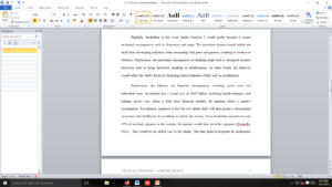 Furthermore, the behavior has financial consequences, including social costs and individual costs. Alcoholism has a social cost of $249 billion, including health insurance and criminal justice cost. Since a child lacks financial stability, all expenses affect a parent’s consumption. For instance, expenses to buy the two drinks daily will alter parent’s consumption or increase the likelihood of vandalism to obtain the money. Since alcoholism amounts to over 25% of medical expenses in the country, the parents would also cover the expenses (Donatelle, 2011).  This would be an added cost to the family. The time spent in hospitals for medication